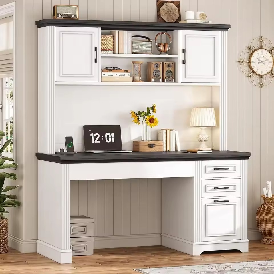 Farmhouse Computer Desk with Hutch and 3 Drawers, 47.2″ Executive Office Desk with Storage DrawersWood Desk with Power Outlet fo