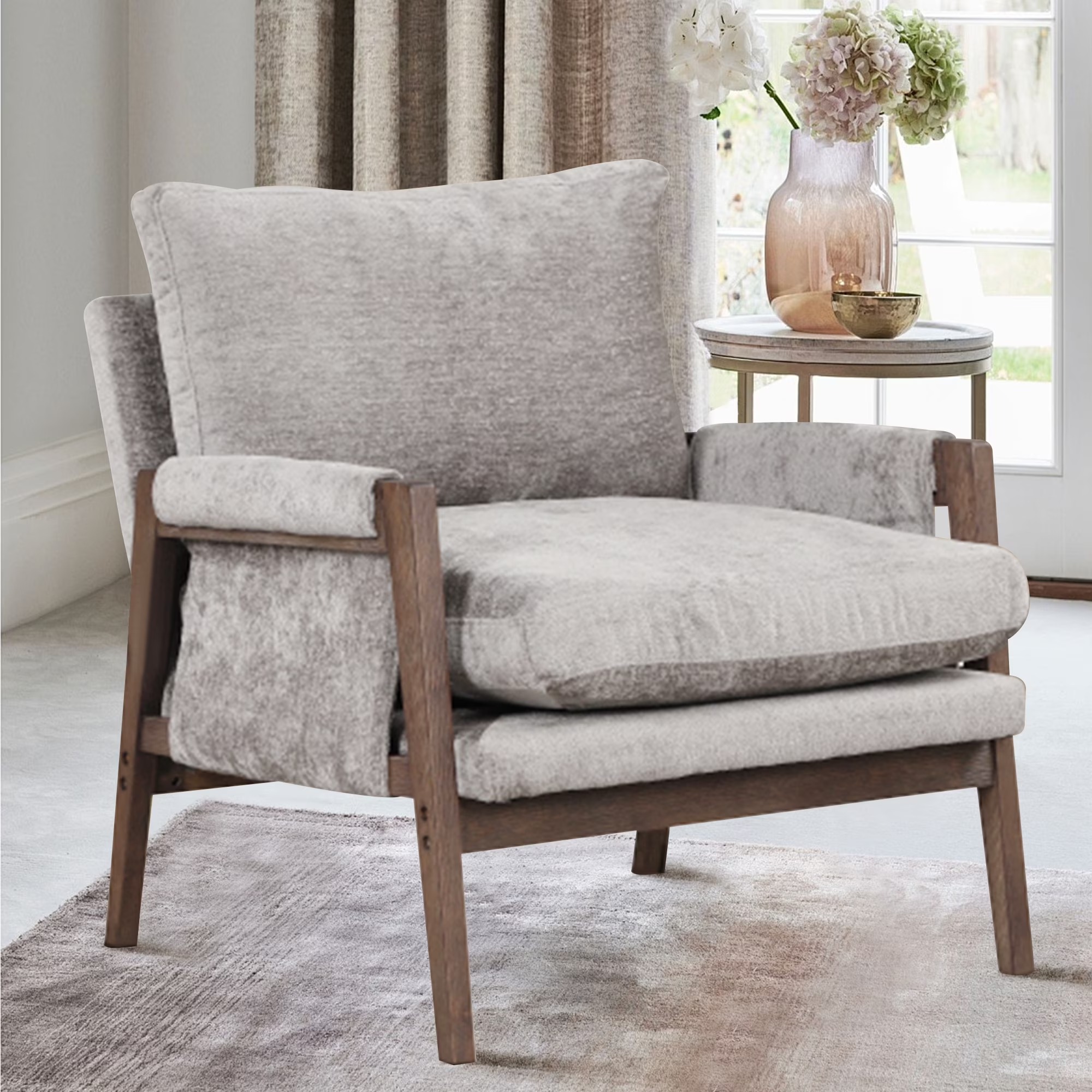 Mid-Century Accent Chair Modern Retro Leisure Chair with Solid Wood Frame Upholstered Teddy Fleece Fabric Single Sofa Armchair