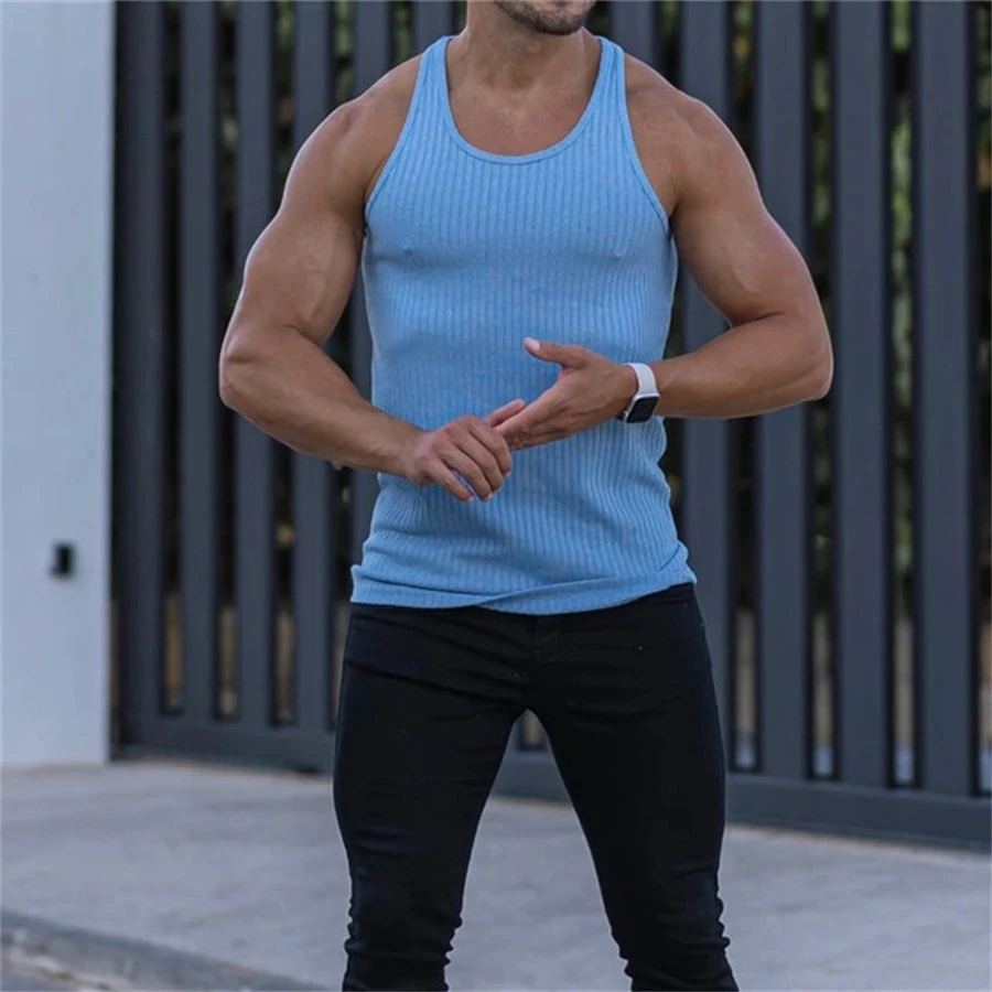 2025 new loose fitness Tank top men Fitness sleeveless shirt Male stripe breathable Sports tops Men Undershirt Daily Casual vest