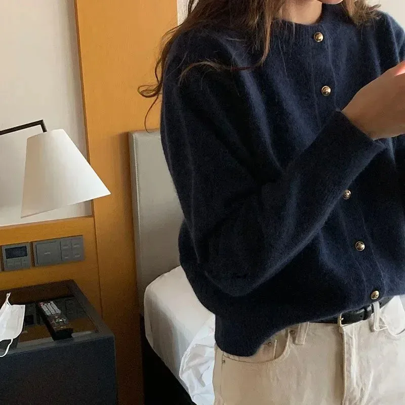 Autumn and winter knitted sweater cardigan fashion loose version of solid color casual crewneck sweater coat