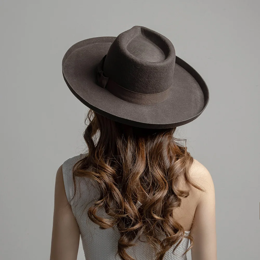 USPOP Women’s 100% Wool Felt Fedora Hat Autumn Winter Wide Brim Upturn Jazz Hat with Elegant Bow Ribbon Decoration
