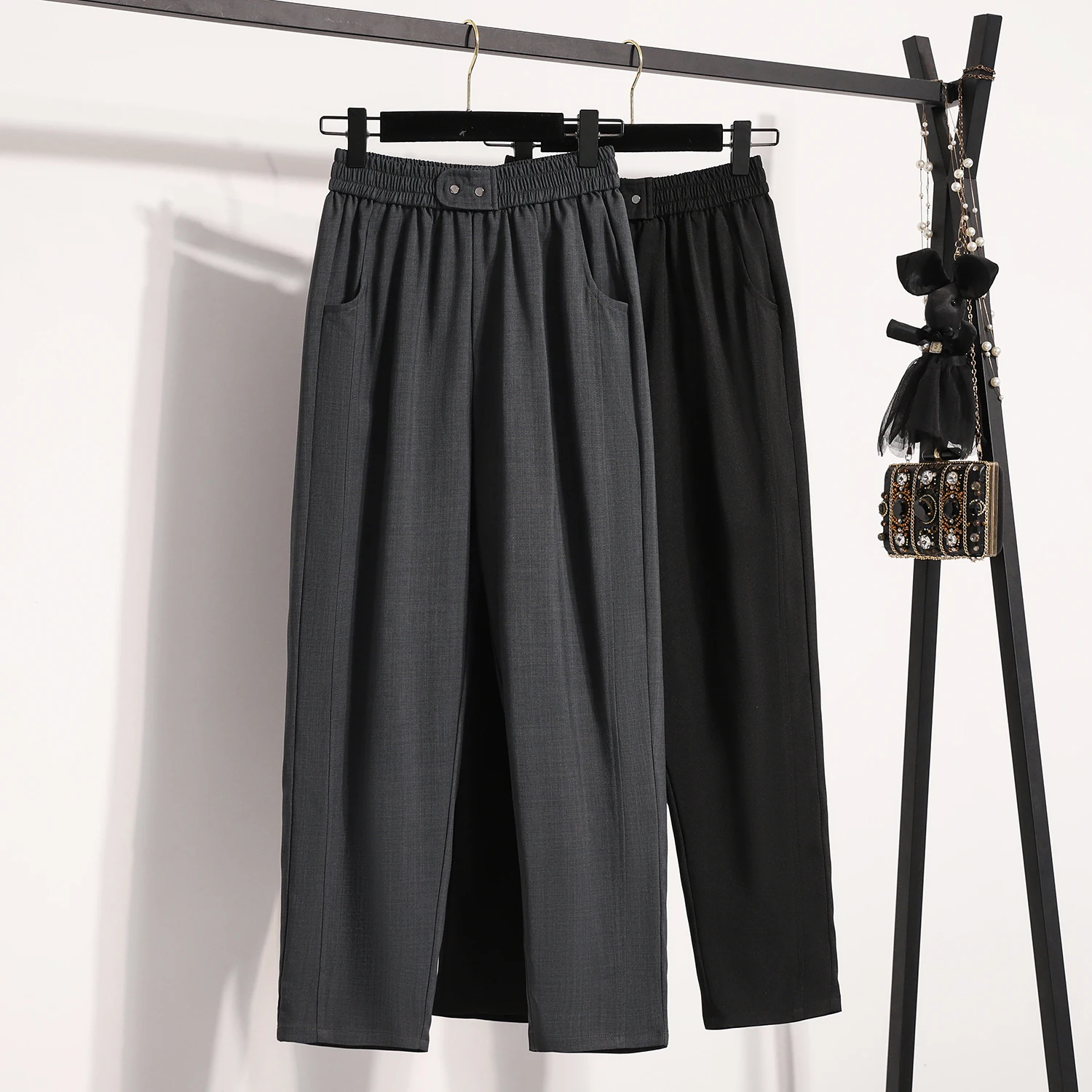 Autumn and Spring Style Women’s Dropped-Crotch Pants; Women’s Casual Straight-Leg Wide-Leg Pants