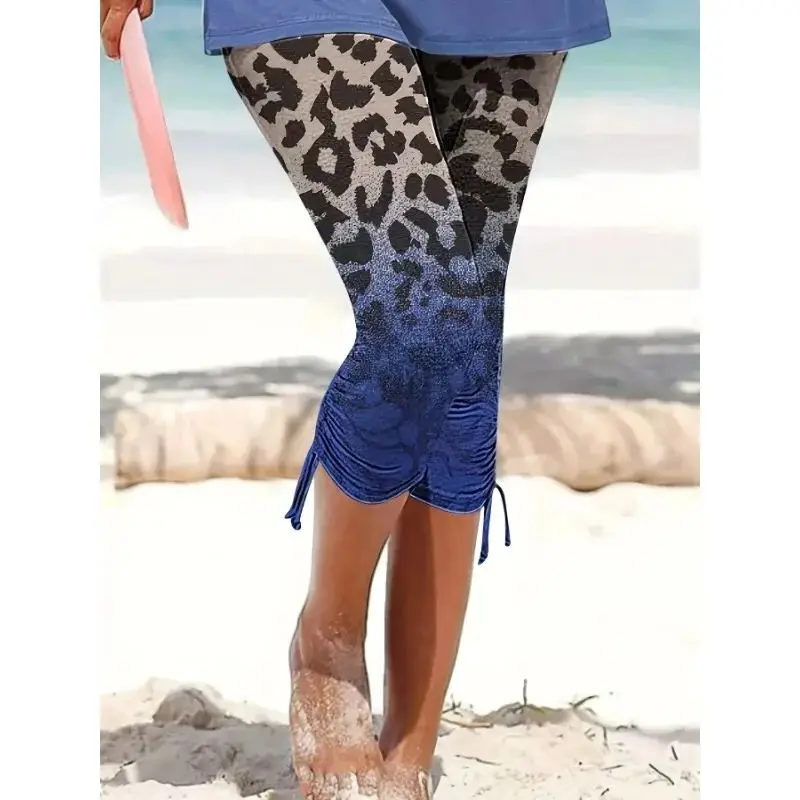 Plus Size 1XL-5XL Women’s Casual Loungewear Bottoms Ombre Leopard Print Lace Up Home Wear Capri Pant