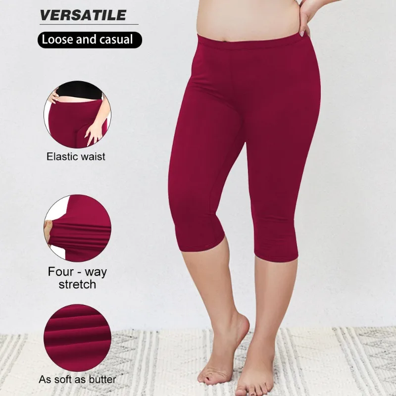 Women Plus Size Fit Short Fitness Seven Points Pants High Waist Fashion Solid 200lbs Sports Shorts Gym Outdoor Casual Yoga Pants