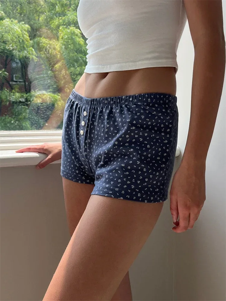 Women’s Casual Elastic Shorts Solid Color/Floral/Heart Print Bottoms Short Pants Summer Loungewear Casual New