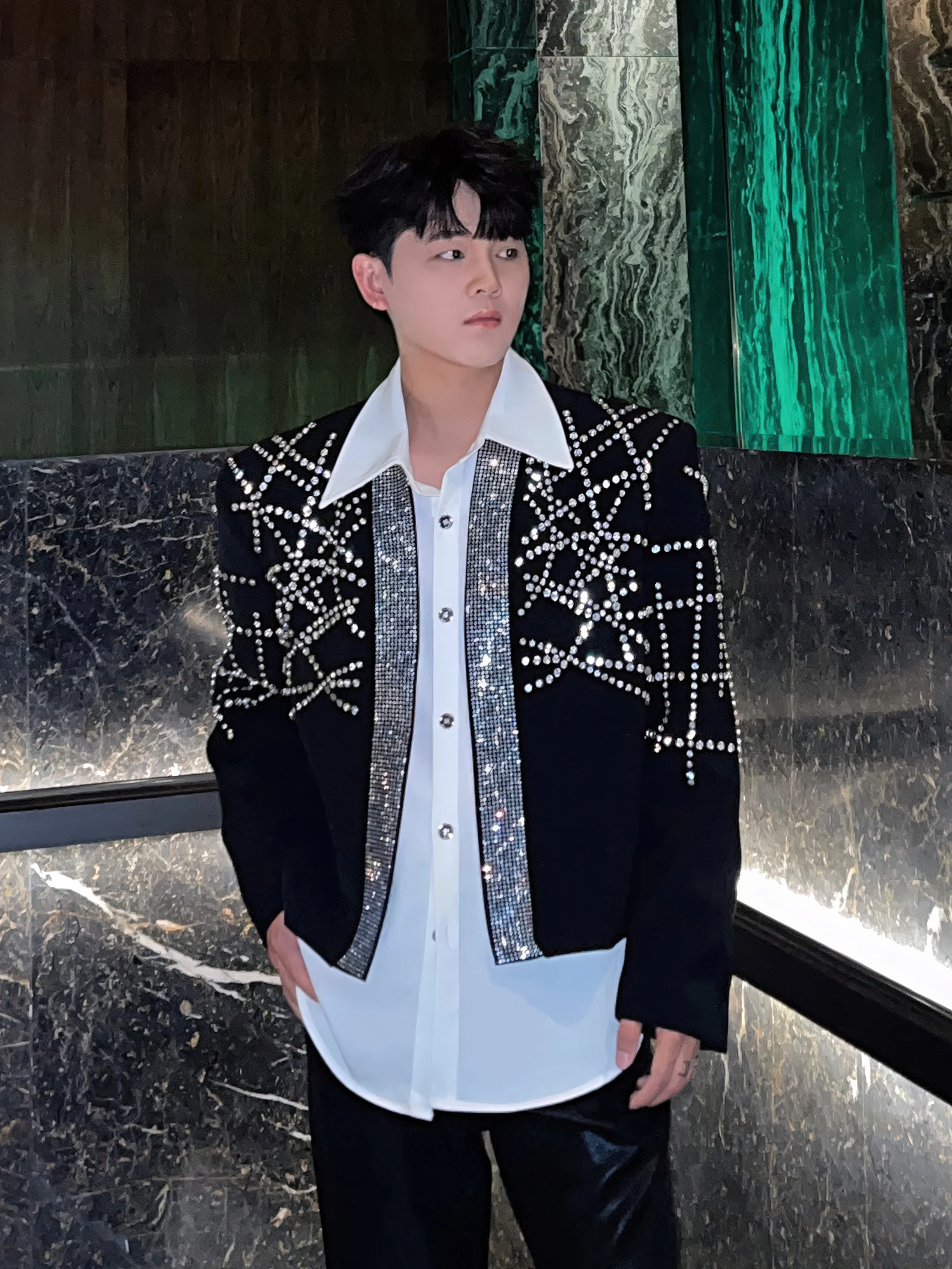 2025 New Fashion Black Blazers Men’s Hot Diamond Stylish Tailored Coats Irregular Diamond-set Design Handsome Loose Suit Jackets