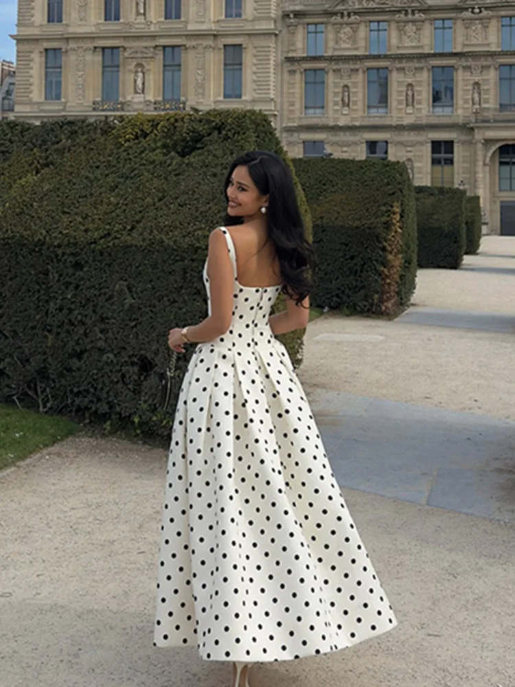Be the first to review “2025 Polka Dot Maxi Dresses Women Elegant Square Neck Lotus Hem Long Gowns Chic Lady Sleeveless High Waist Cinched Summer Robes”