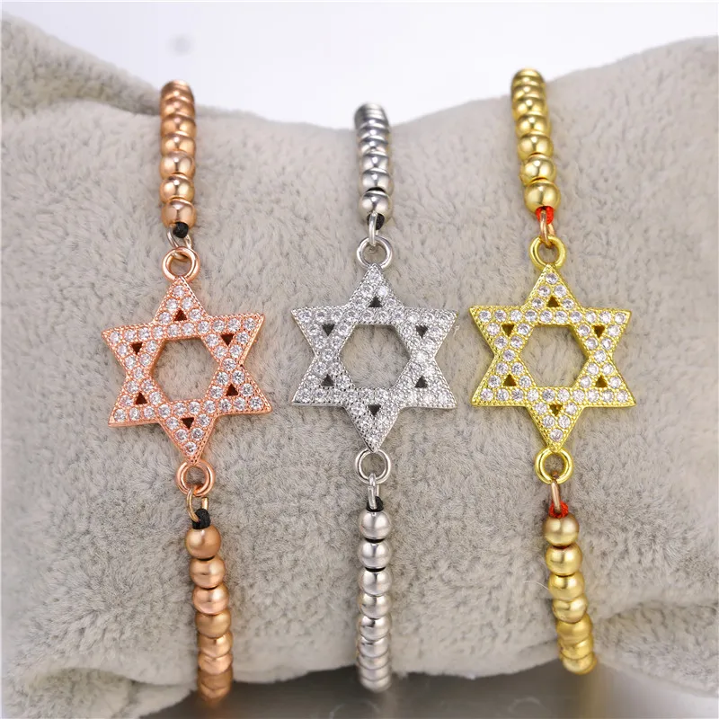 DIY joyería artesanal pulseras con dijes Micro pavé circón estrella de David pulseras para mujeres niñas cadena ajustable pulseras judaísmo