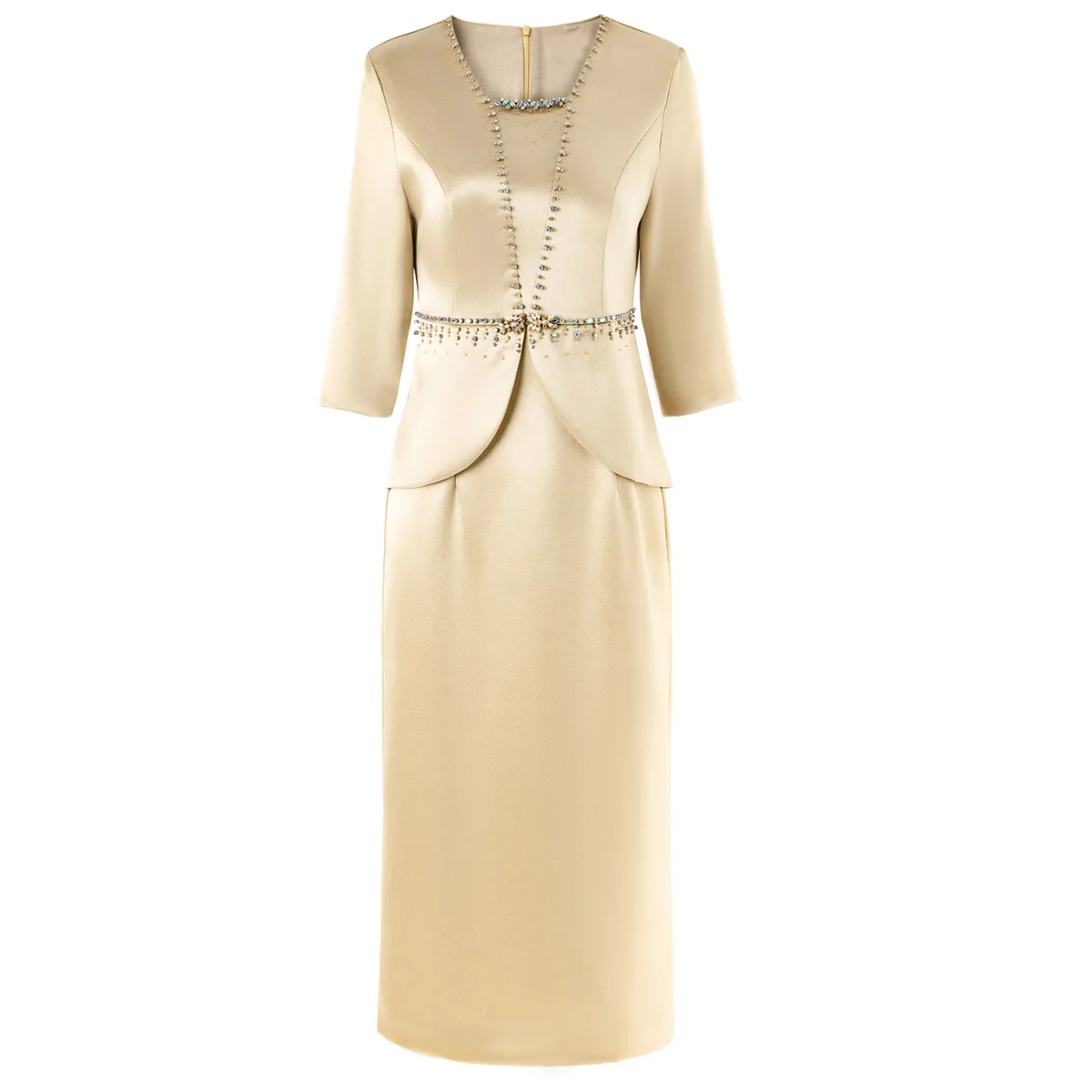 Elegant champagne dress wedding banquet three-quarter sleeve dress for women slimming spring and autumn daily wear