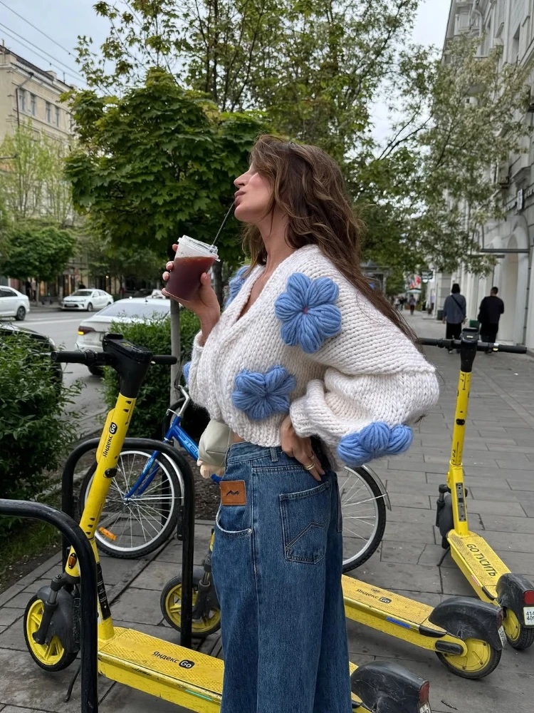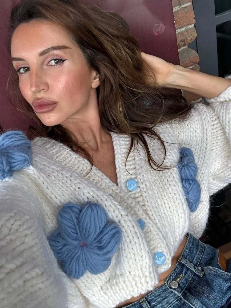 • Model Number: Elegant Knitted Flowers Cardigan Women