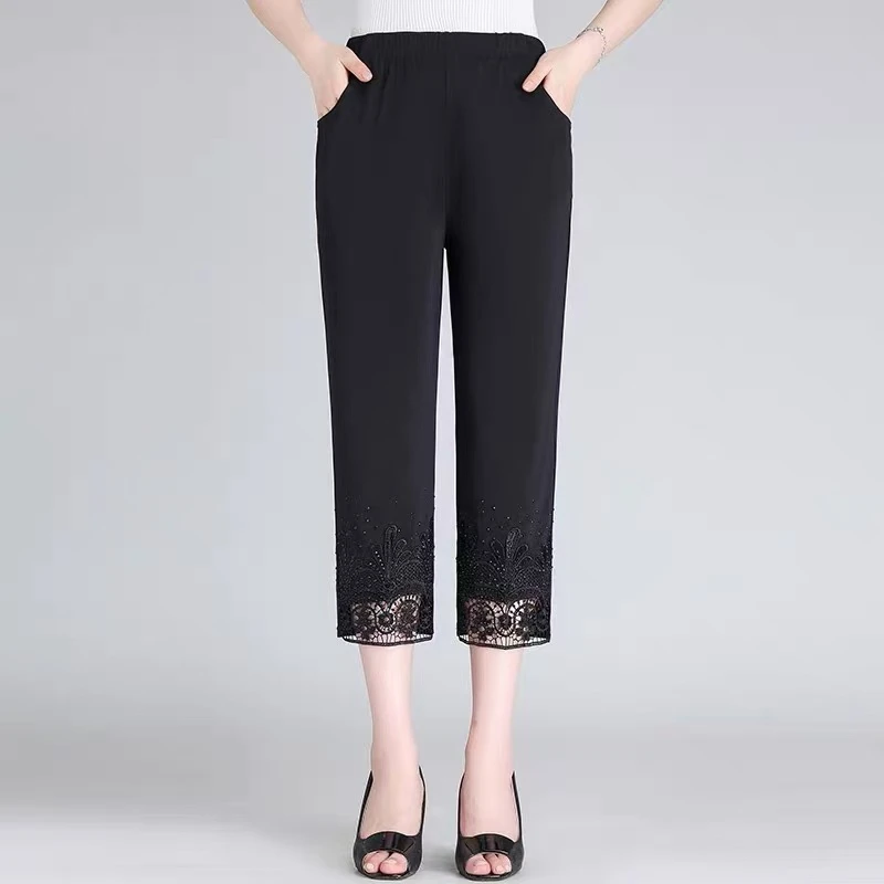 Hollow Out Diamond Studded Women’s Summer Cropped Pants Fashionable Cool 2025 Casual Outdoor Pants New Street Pants