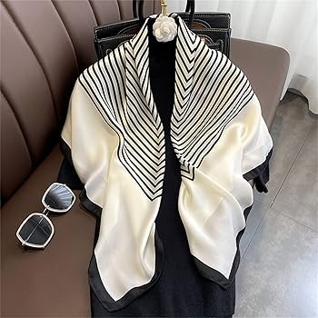 Be the first to review “Light luxury 90 Silk scarf imitatingly printed with black and white stripes large square shawl New Year gift”