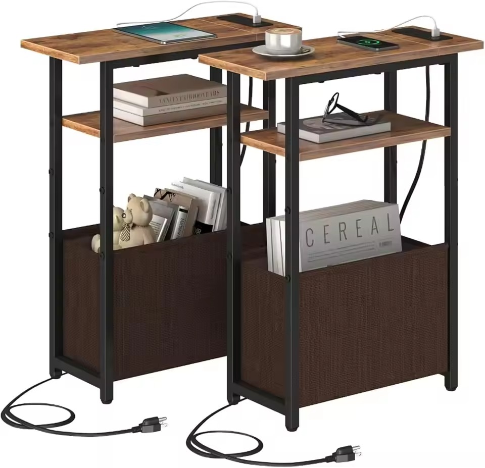 Be the first to review “Narrow Side Table with Charging Station Set of 2, Small End Table for Small Spaces, Skinny Nightstands Set 2 with Storage Basket”