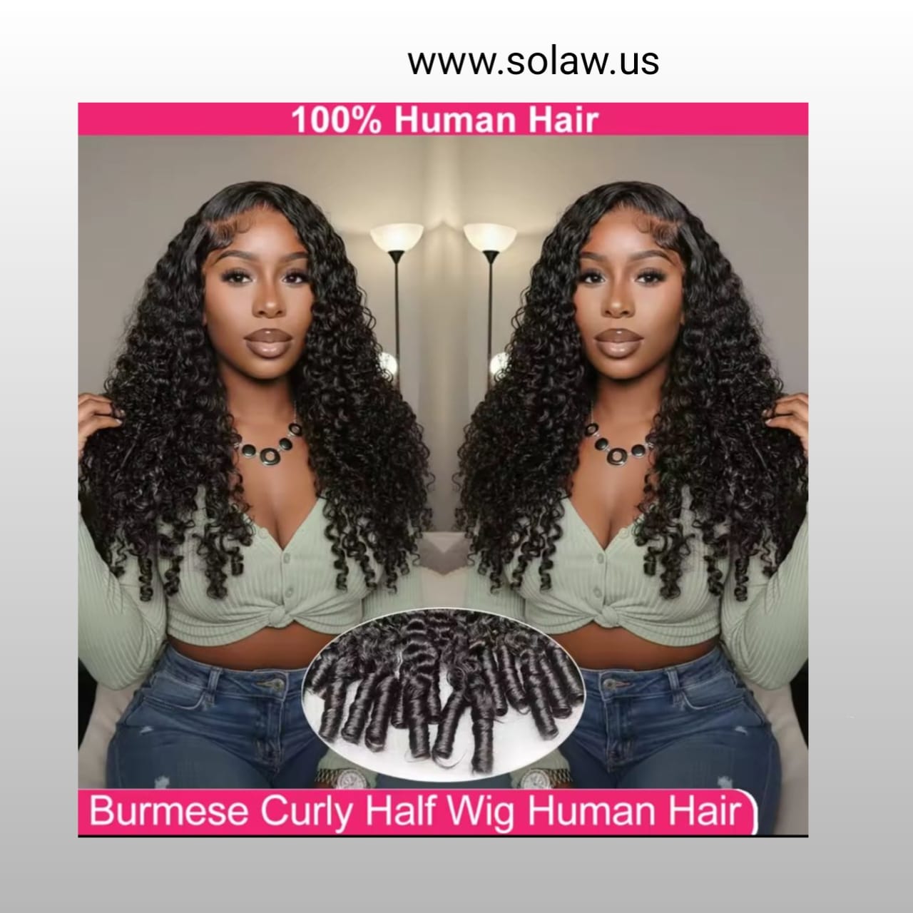 SOLAW Burmese Curly Human Hair Wig – 100% Virgin Vietnamese Hair