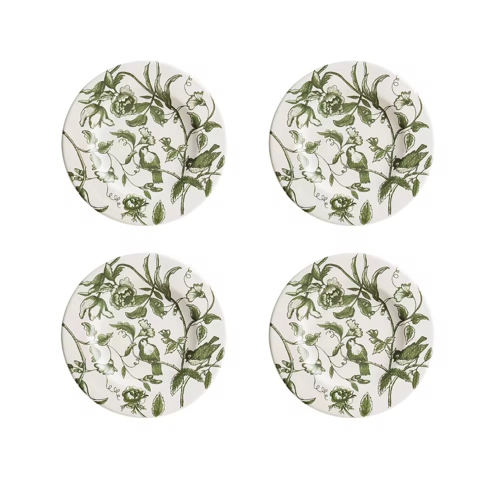 Set of 4 Flower And Bird Design Dinner Plates Kitchen Dining Tableware