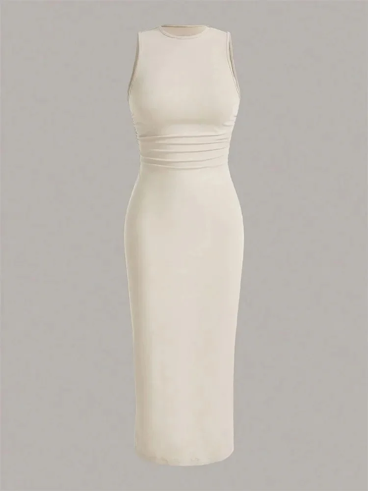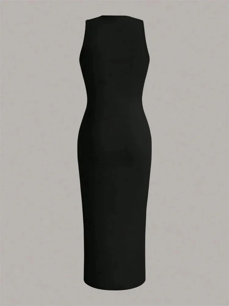 Solid Basic Round Neck Sleeveless Bodycon Dress for Women Summer Straight Maxi Pencil Dresses