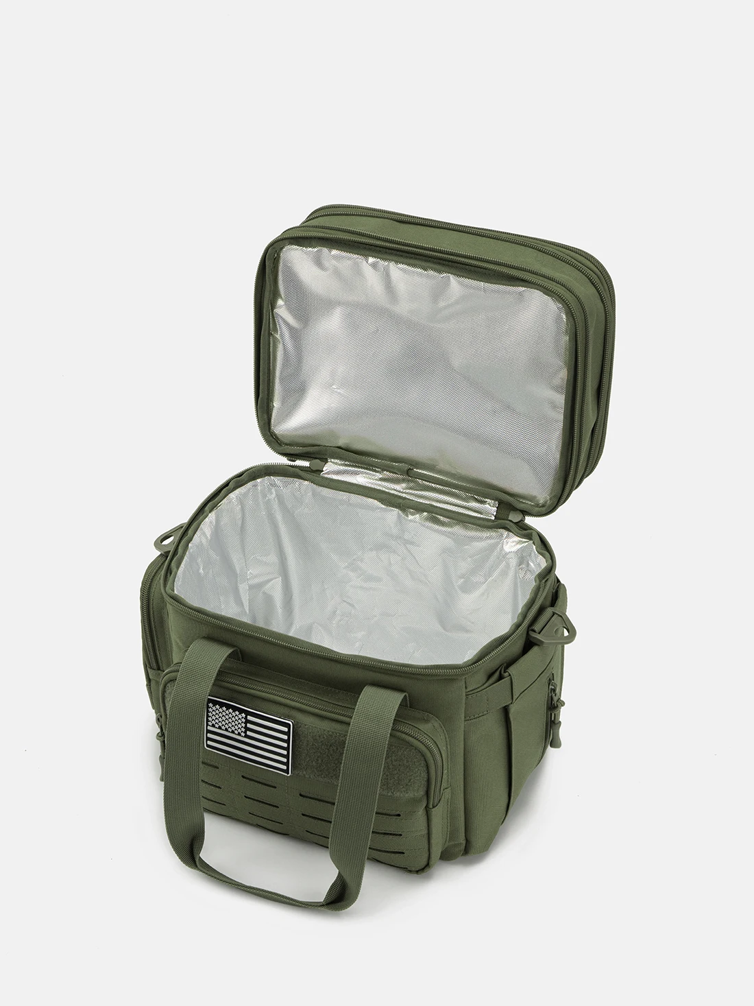 【Multifunctional Tactical Design】Inspired by tactical gear, this insulated cooler bag can be used as a messenger bag or handbag. The padded, adjustable shoulder strap improves comfort during extended use. The front panel allows you to personalize the bag with a patch or label to add a unique style. Perfect for outdoor enthusiasts or those interested in tactics.