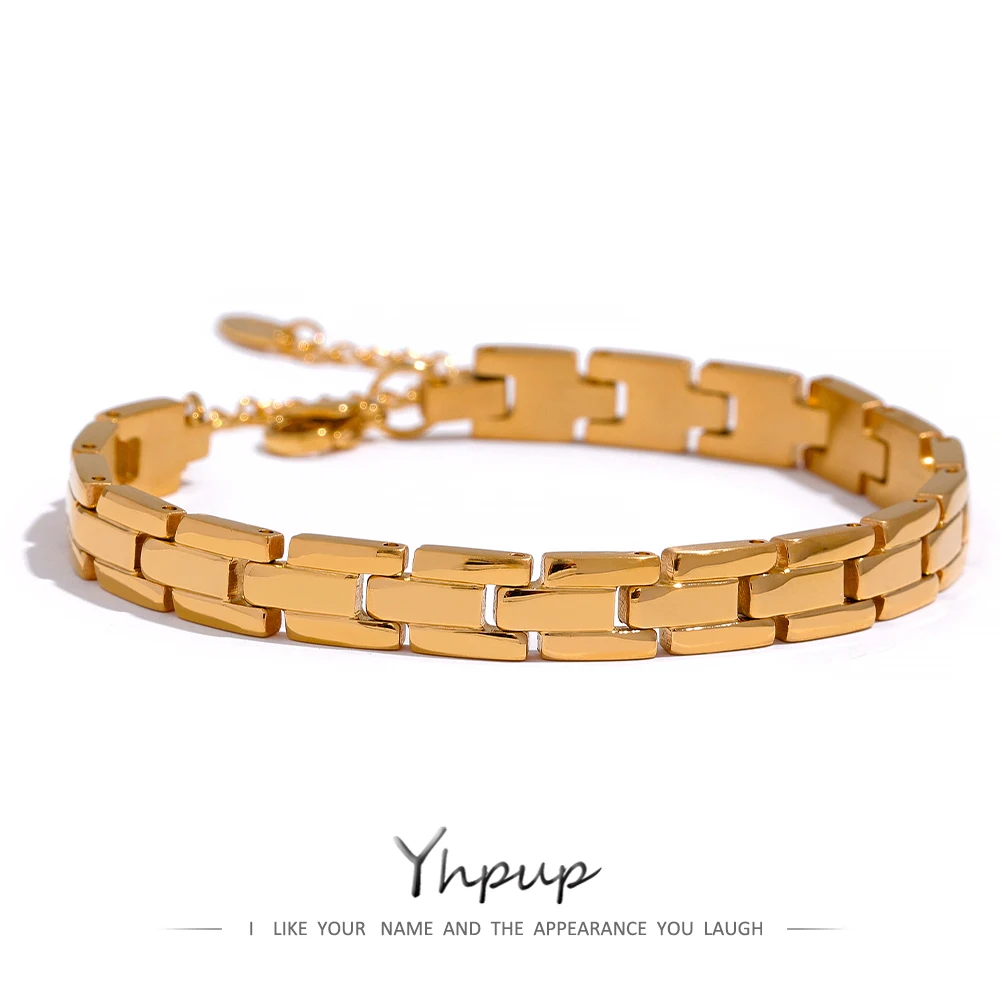 Yhpup-abalorio de acero inoxidable 316L, cadena pulida, pulsera dorada, brazalete llamativo, Pvd ancho, joyería ajustable para mujeres y hombres